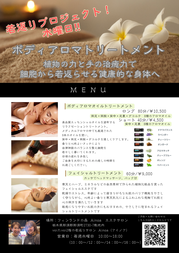 厳選したエッセンシャルオイルを使い、香りとタッチで心身をリラックスを提供するトリートメント