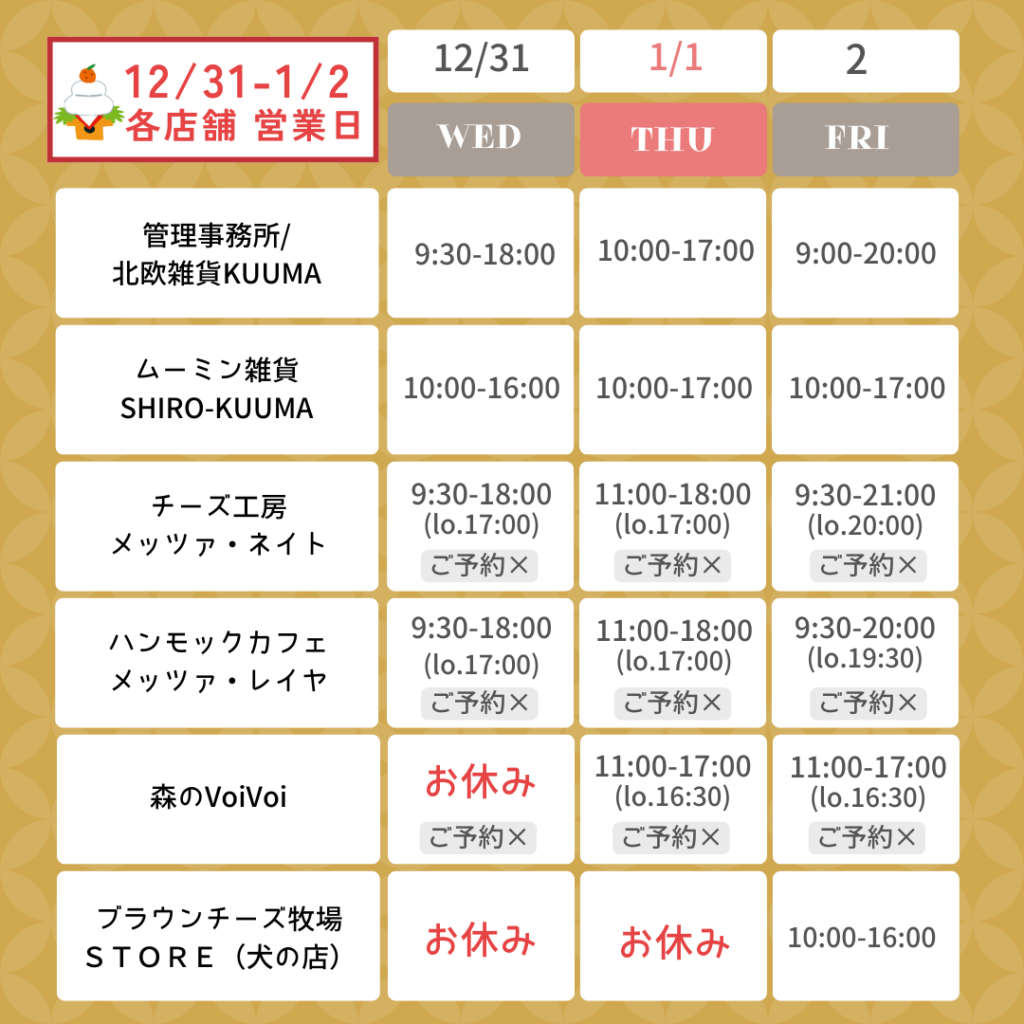 フィンランドの森は年末年始も無休で営業しておりますが、