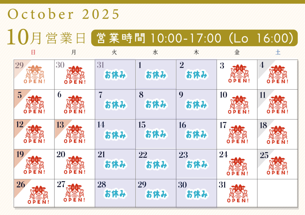 10月営業日 ブラウンチーズ牧場store 犬の店