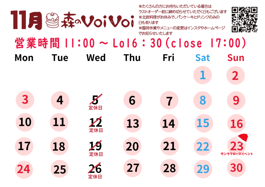 森のvoivoi 11月の営業日のお知らせ