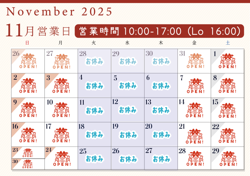 11月営業日 ブラウンチーズ牧場store 犬の店