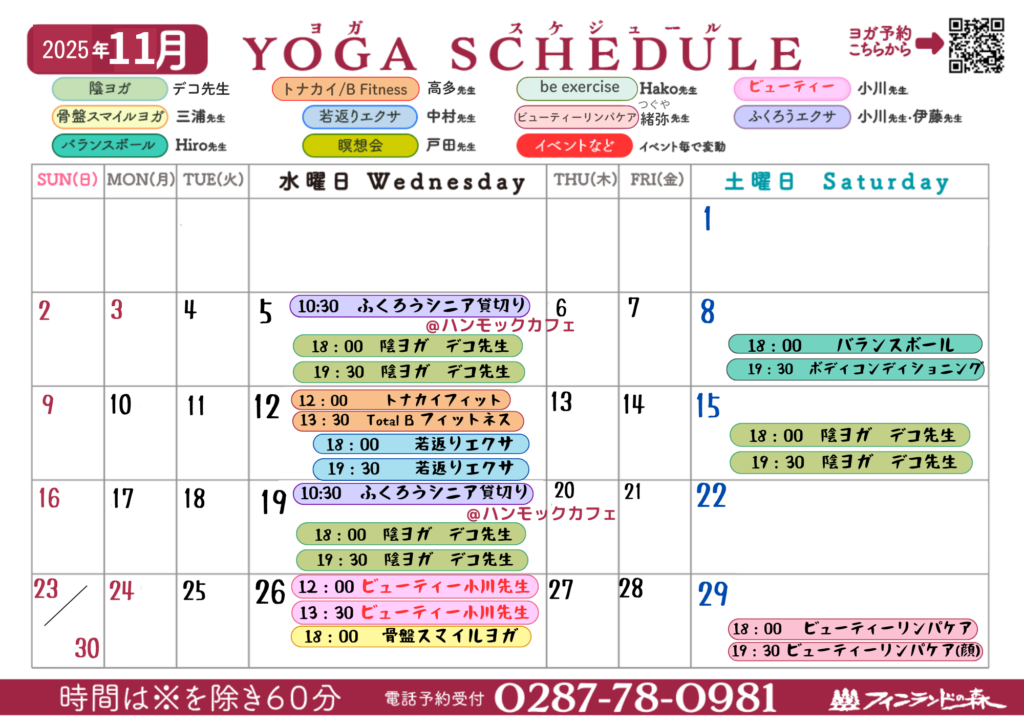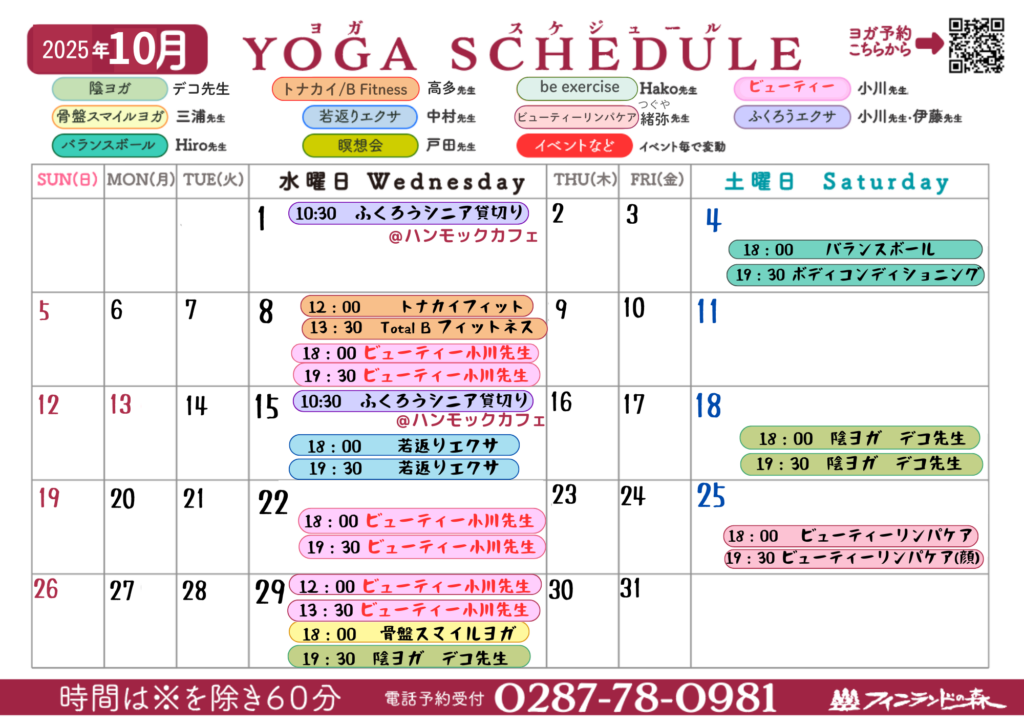 ●若返りエクササイズ・バランスボール・リンパケア・瞑想会、不定期に開催するスペシャルイベントも!